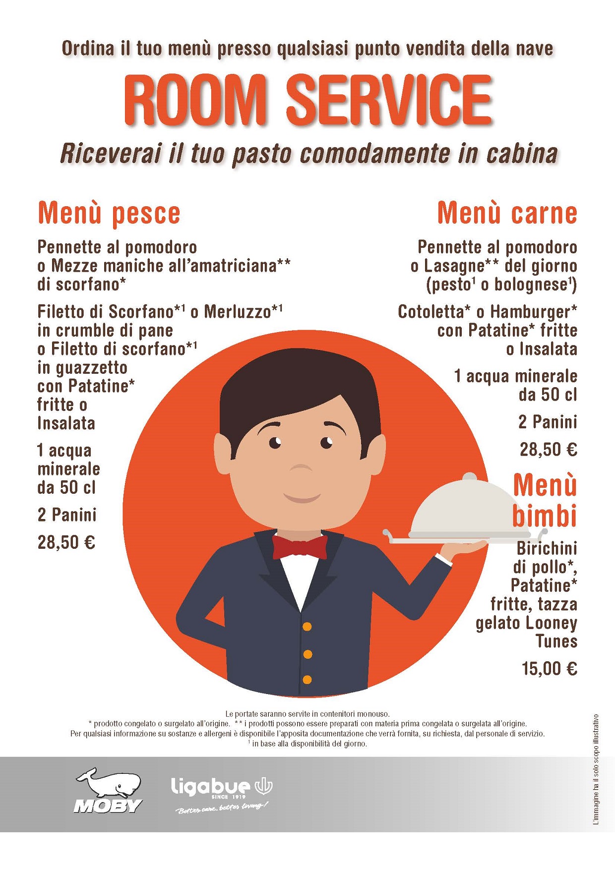 Catering service in the cabin The Moby and Tirrenia cabin service is an extraordinary experience for our customers. More information