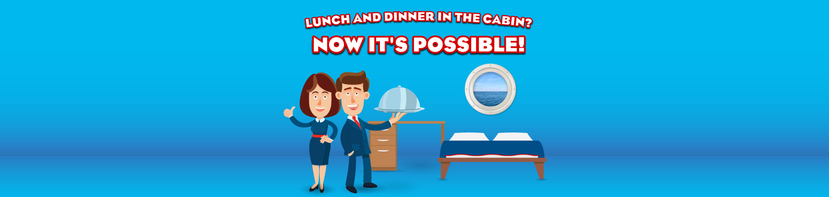 Buy the menus online now in step 3-Services during the booking process. Once on board, report to the ship's reception desk with the voucher for the service you have booked. After 30 minutes you will receive lunch or dinner directly in your cabin.